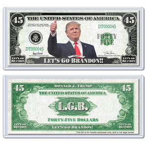 Donald Trump USA Let's Go Brandon LGB President MAGA 45 Dollar Novelty Bill with Currency Holder